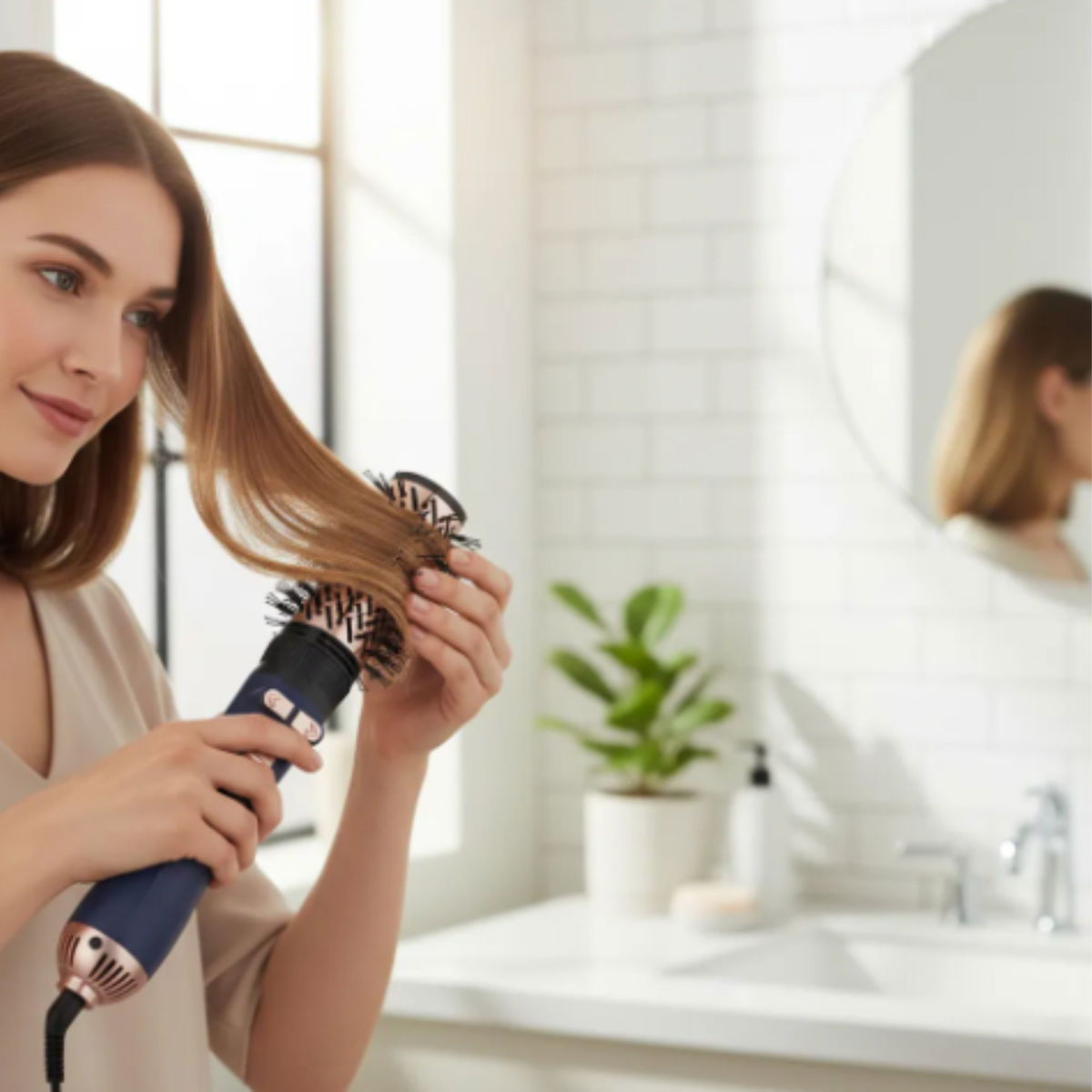 Si querés ahorrar tiempo y lograr un look prolijo desde casa, este cepillo secador giratorio es tu mejor aliado. Combina aire caliente y rotación para secar mientras modelás, logrando más volumen y forma con menos pasadas. Ideal para alisar, dar movimiento en puntas o crear brushing suave sin necesidad de usar varias herramientas.