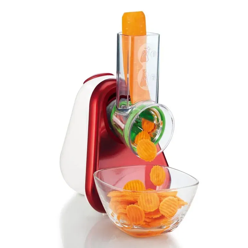 El Multirallador Moulinex Fresh Express Rojo DJ755GAR es el aliado perfecto para simplificar tus preparaciones en la cocina. Con su diseño compacto y moderno en un vibrante color rojo, este versátil electrodoméstico permite rallar y cortar una gran variedad de alimentos en segundos. Equipado con 5 conos intercambiables, ofrece opciones de corte grueso, fino, ondulado, rallado y rebanado, adaptándose a diferentes necesidades culinarias.