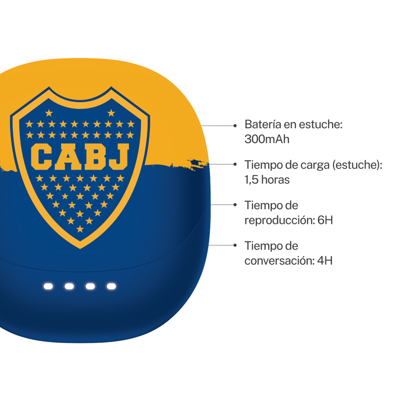Gracias a su conectividad inalámbrica podés olvidarte de los cables y moverte con total libertad. El estuche de carga portátil asegura horas de autonomía para que no te quedes sin batería en el momento menos pensado. Además, su diseño exclusivo del club te permite mostrar tu pasión con estilo.