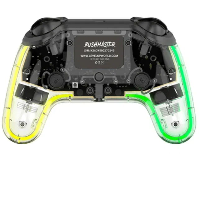 El Bushmaster LevelUp es un joystick pensado para quienes buscan libertad, rendimiento y estilo en un solo dispositivo. Gracias a su conectividad Bluetooth, podés jugar sin cables desde tu consola o PC, aunque también incluye un cable USB-C para conexión directa cuando lo necesites. La iluminación RGB configurable no solo mejora la estética, también acompaña la acción con efectos dinámicos.