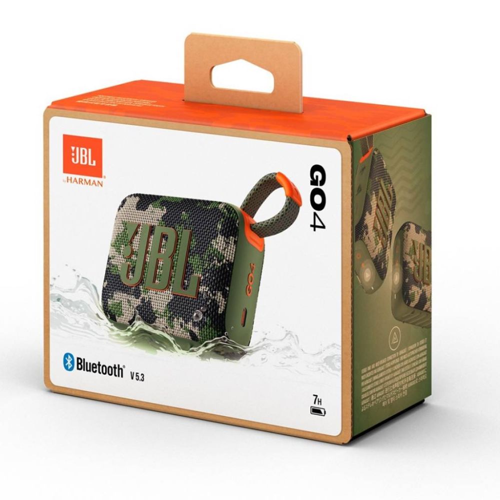 El JBL Go 4 en color verde camuflado combina un diseño moderno con el rendimiento de sonido que esperás de JBL. Su tamaño compacto te permite llevarlo en la mochila, colgarlo en la bici o simplemente tenerlo siempre a mano. A pesar de su tamaño, ofrece un sonido sorprendentemente potente y nítido, gracias a la tecnología JBL Pro Sound.
